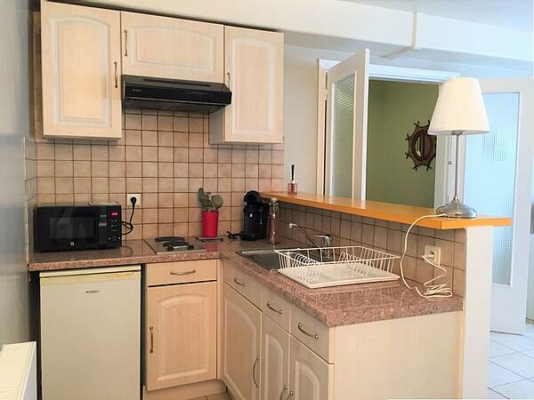 Se compone de un salon con sofa cama doble, una cocina abierta y funcional y un cuarto de bano con wc.