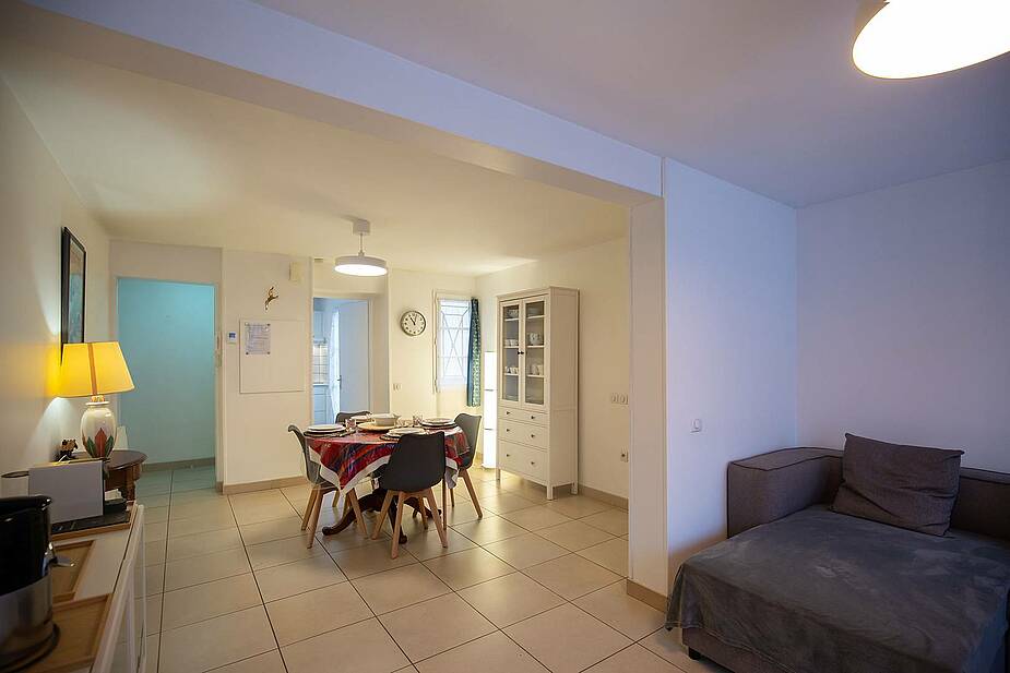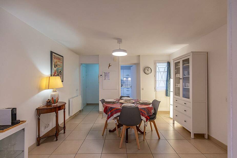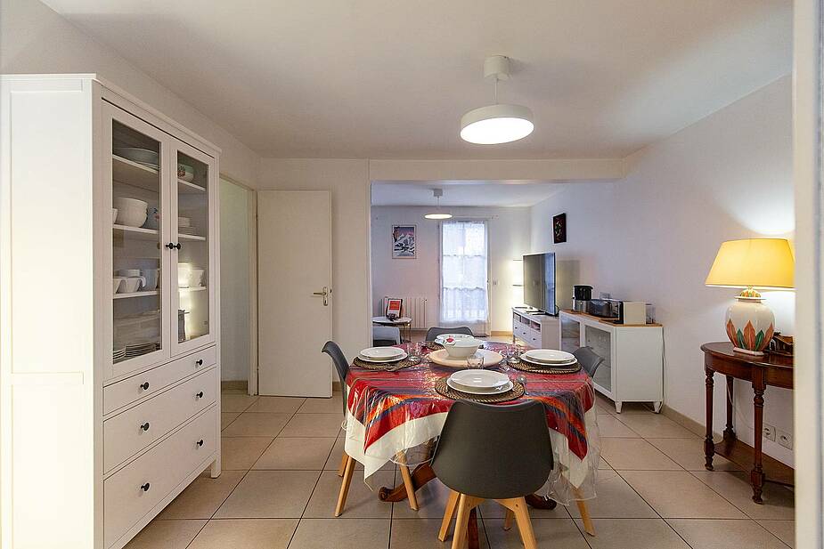 El comedor dispone de una mesa redonda con 4 sillas. También encontrará una cafetera Krups Nespresso, una tostadora y un exprimidor de cítricos Magimix Juice.