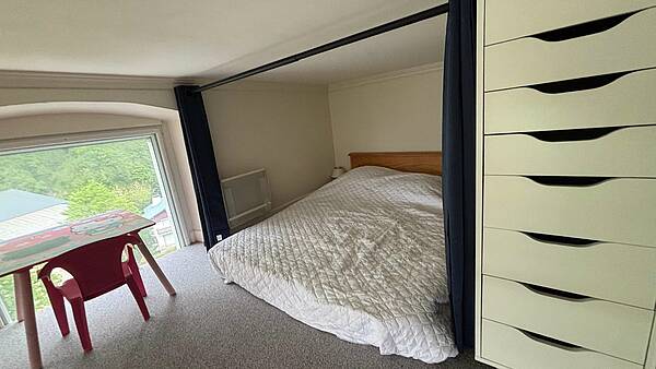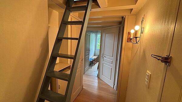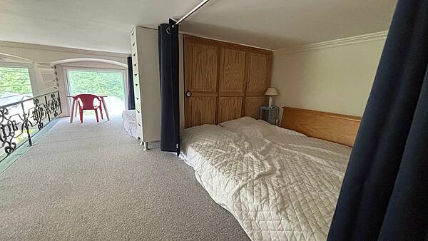 El acceso al altillo se realiza mediante una escalera tipo escalera de molinero. En él encontrará dos camas de 140 × 190 cm. ATENCIÓN: la altura del techo no permite estar de pie y el altillo no es adecuado para niños menores de 6 años.