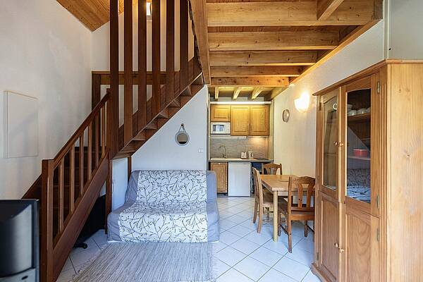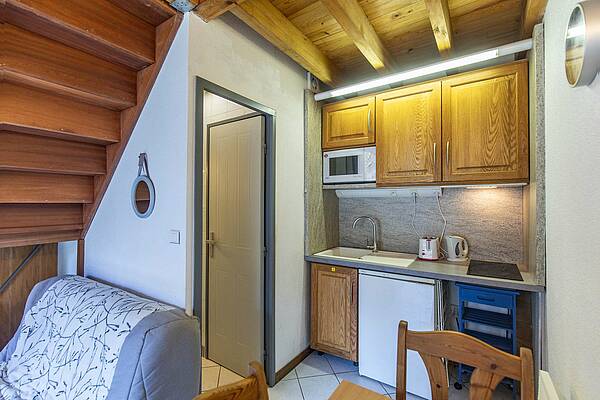 El apartamento Le Peguere se compone de un salón-cocina equipada donde se encuentra un sofá convertible. La cocina cuenta con todo el equipamiento necesario para su estancia: cafetera senseo, hervidor, tostadora, microondas, raclette y set de fondue.