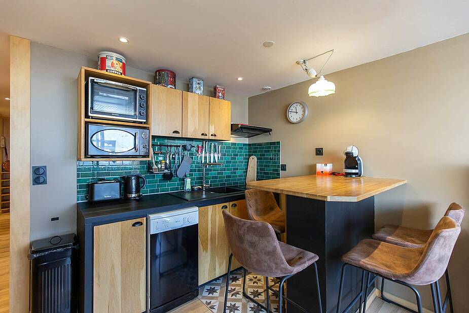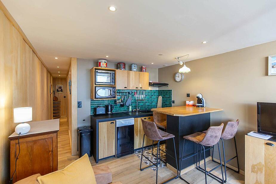 En el 4 ° piso con ascensor, balcón orientado al oeste (vista del complejo y las pistas). Manténgase equipado con un televisor, un sofá cama para dos personas. Cabina de esquina con tres literas en 70cm. Rincón-cocina abierta a la sala de estar con cocina eléctrica, microondas, nevera, tostadora, hervidor, cafetera de filtro y servicio de raclette. Cuarto de baño con lavadora. Aseos. Casillero de esquí en la República Democrática del Congo.